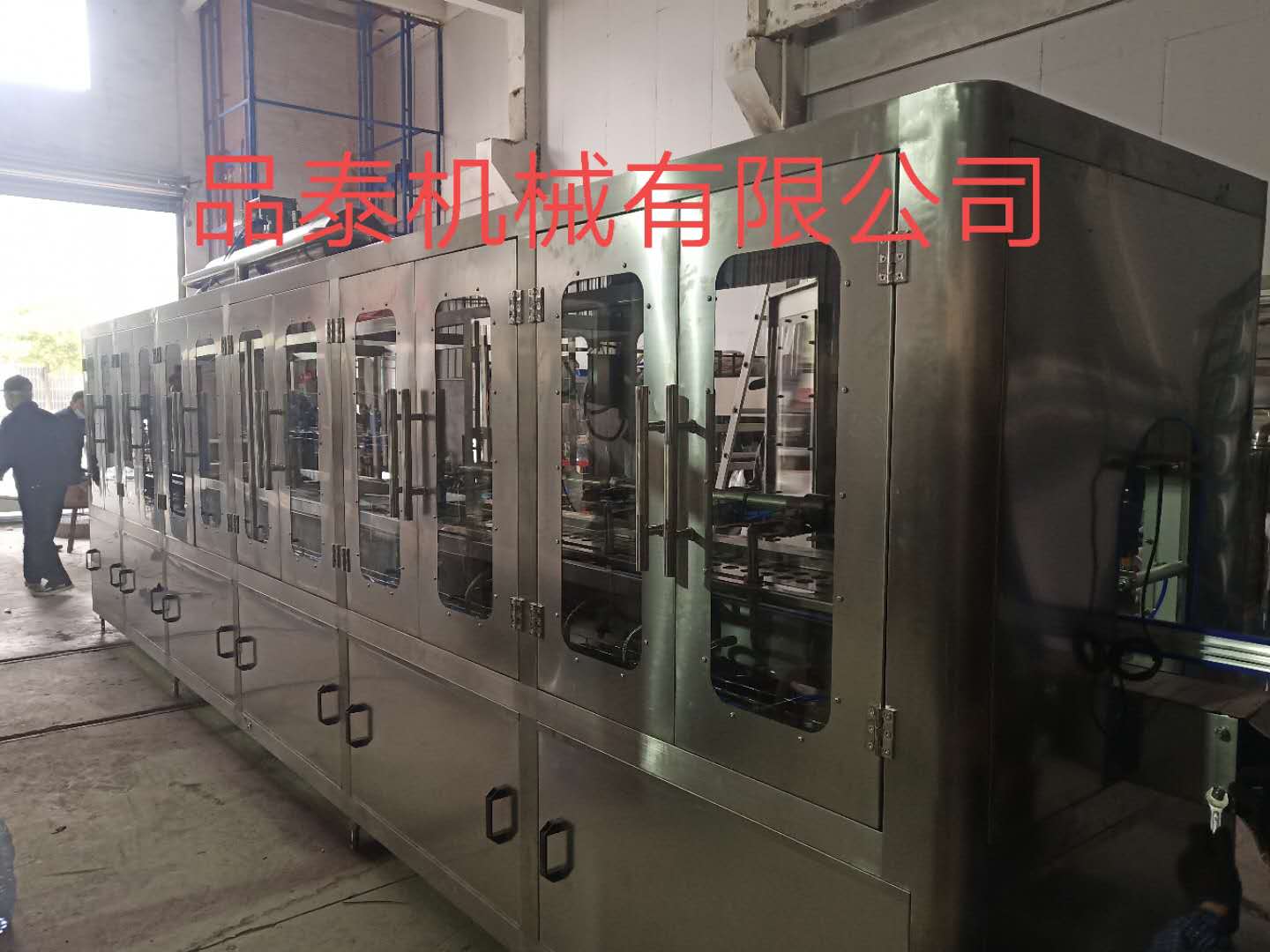 蘇州品泰機械有限公司在2020年4月28日完成了PTZGF8-8-1的直線灌裝設備的生產任務,已順利完成廠內調試,目前已經順利發貨了。PTZGF8-8-1設備由公司技術部按照客戶需求自行設計開發的新款設備,設備外觀精美,這款設備同時滿足了5升12升的兩種桶型的生產要求,在大小桶的生產高度調整采用自動觸摸屏操控,輕松完成調整。對桶的沖洗部分采用機械手夾桶翻轉沖洗,灌裝采用高速定量自動閥灌,這種閥具有液位精準速度快操控方便等 優點。在旋蓋部分采用新型旋蓋系統。采用掛瓶口方式自動進桶自動旋蓋自動出桶,同時還滿足高矮桶,高矮瓶蓋的不一樣要求的旋蓋。滿足不一樣的瓶口對旋蓋的力度要求和旋蓋圈數的要求,均能在觸摸屏上輕松調整。歡迎各位新老客戶提出寶貴意見,洽談合作!